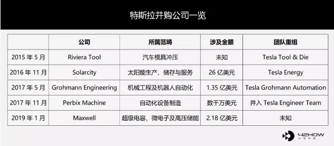 下面是特斯拉的并購公司一覽。