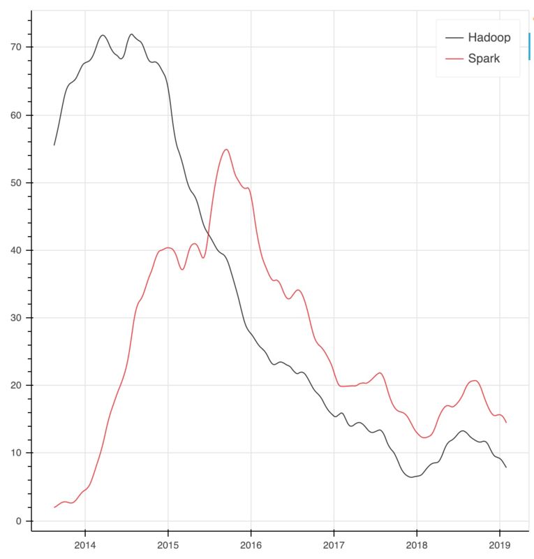 從 2013 年 Spark 開始接管 Hadoop 的那一刻起,Hadoop 就開始穩(wěn)步下滑。