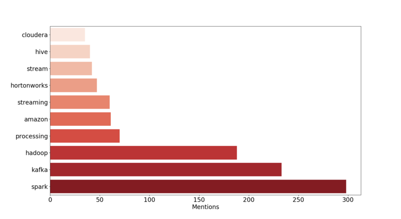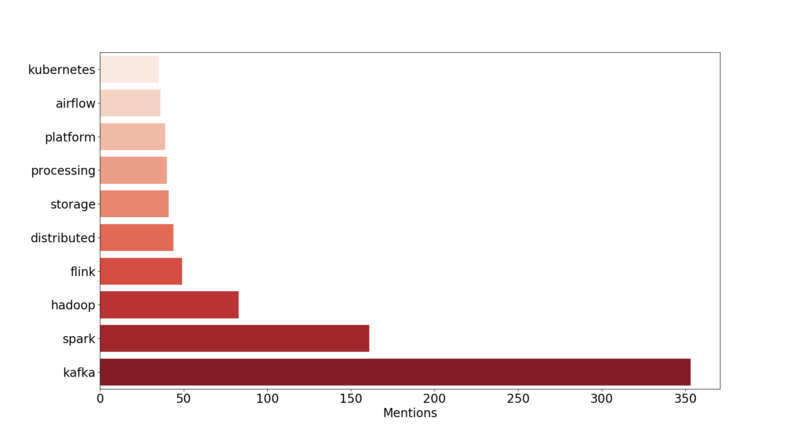 Spark 取代 Hadoop 的一名位的置,Kafka 進入前三。大多數(shù)舊項目(HDFS、YARN、MR、PIG……)都沒有進入前十。