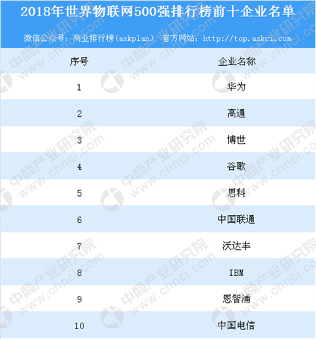 從2018世界物聯(lián)網(wǎng)大會(huì)在北京國(guó)家會(huì)議了解到,2018世界物聯(lián)網(wǎng)排行榜500強(qiáng)企業(yè)是從全球數(shù)千家物聯(lián)網(wǎng)企業(yè)中遴選而出,涵蓋工業(yè)、傳感器、農(nóng)業(yè)、RFID、物流物聯(lián)網(wǎng)、醫(yī)療健康、云計(jì)算、大數(shù)據(jù)、交通、環(huán)保、機(jī)器人、芯片、半導(dǎo)體、人工智能、能源、智能硬件及終端、網(wǎng)絡(luò)通信等領(lǐng)域的企業(yè)。據(jù)榜單顯示,進(jìn)入榜單前十的企業(yè)分別是:華為、高通、博世、谷歌、思科、中國(guó)聯(lián)通、沃達(dá)豐、IBM、恩智浦和中國(guó)電信。前十中,華為穩(wěn)居榜首,可見,未來(lái)物流網(wǎng)發(fā)展,中國(guó)市場(chǎng)可期,中國(guó)技術(shù)可盼。