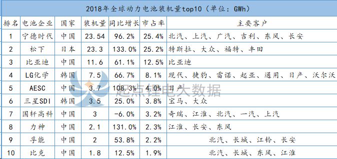 2017&2018年全球動(dòng)力電池裝機(jī)量top10對(duì)比