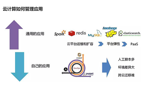 自己的應(yīng)用自動安裝:比如電商應(yīng)用是你自己開發(fā)的,除了你自己,其他人是不知道怎么安裝的。像電商應(yīng)用,安裝時需要配置支付寶或者微信的賬號,才能使別人在你的電商上買東西時,付的錢是打到你的賬戶里面的,除了你,誰也不知道。所以安裝的過程平臺幫不了忙,但能夠幫你做得自動化,你需要做一些工作,將自己的配置信息融入到自動化的安裝過程中方可。比如上面的例子,雙十一新創(chuàng)建出來的90臺機(jī)器是空的,如果能夠提供一個工具,能夠自動在這新的90臺機(jī)器上將電商應(yīng)用安裝好,就能夠?qū)崿F(xiàn)應(yīng)用層面的真正彈性。例如Puppet、Chef、Ansible、Cloud Foundary都可以干這件事情,最新的容器技術(shù)Docker能更好的干這件事情。