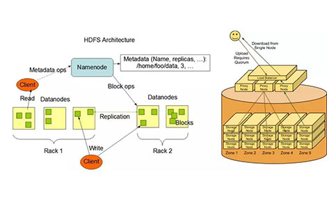 對于數(shù)據(jù)的存儲:一臺機(jī)器的文件系統(tǒng)肯定是放不下的,所以需要一個很大的分布式文件系統(tǒng)來做這件事情,把多臺機(jī)器的硬盤打成一塊大的文件系統(tǒng)。
