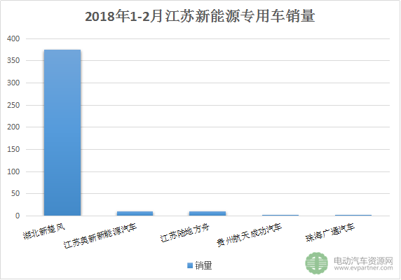 江蘇前2月銷售新能源專用車近400臺(tái),其中湖北新楚風(fēng)占絕對(duì)上風(fēng),另外江蘇奧新、江蘇陸地方舟、貴州航天成功汽車、珠海廣通汽車在此地有少許銷量。