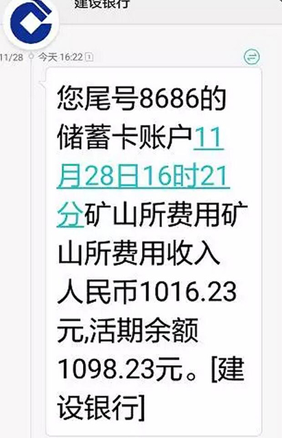 這是湖北省大冶市茗山鄉(xiāng)大魯村的張先生在11月28日,由建設銀行發(fā)來短信提示他家的10kW電站收益了1016.23元,讓他真切的享受到了光伏電站的投資收益。