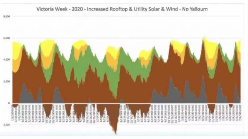 維多利亞州也可以向南澳大利亞出口820兆瓦,但由于天氣模式相似,維多利亞州和南澳大利亞經(jīng)常同時(shí)多風(fēng)和晴朗;如果是在白天,維多利亞也可能無(wú)法出口到新南威爾士州,因?yàn)樾履贤柺恐莺屠ナ刻m州也具備光伏發(fā)電能力。這意味著,在某些時(shí)候,2000至3000兆瓦的過(guò)剩發(fā)電量無(wú)處可去,這些過(guò)剩電量將可能會(huì)成為“棄電”。