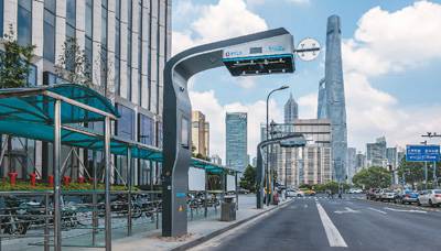 6月24日,在上海外灘新開河路26路公交車終點站旁,兩座智動柔性充電弓已經安裝完畢,預計10月份投入運營。
