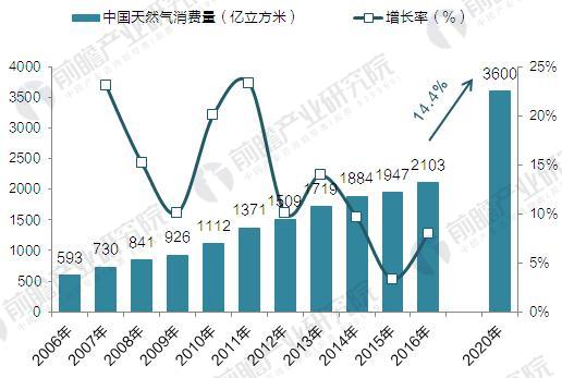 據(jù)統(tǒng)計(jì),2016年全球天然氣消費(fèi)量約3.54萬億立方米,其中美國(guó)、俄羅斯、 中國(guó)天然氣消費(fèi)量居前三位,2016年我國(guó)天然氣消費(fèi)量已由2006年的593億立方米提高至2103億立方米,年均復(fù)合增速達(dá)到13.5%,高于產(chǎn)量的增速(2006-2016年我國(guó)天然氣產(chǎn)量由606億立方米提高至1384億立方米,年均復(fù)合增長(zhǎng)率為8.6%),因此供應(yīng)缺口持續(xù)擴(kuò)大。