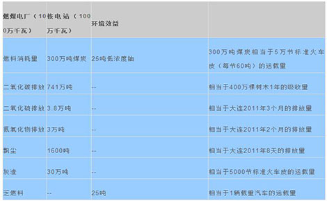 一個裝機容量100萬千瓦的核電站和同等規(guī)模的火電廠相比,每年可減少煤炭消耗300萬噸,減少二氧化碳排放741萬噸。紅沿河核電站4臺機組一年減排的二氧化碳相當于小興安嶺森林1個月的吸收量。