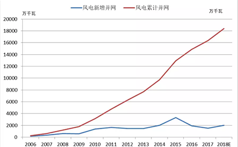 圖1:中國(guó)歷年風(fēng)電并網(wǎng)情況