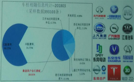截至2018年3月,通過聯(lián)盟內(nèi)成員整車企業(yè)(比亞迪、上汽、北汽、江淮、特斯拉、長安、吉利、奇瑞、東風電動、東風日產(chǎn)、廣汽、一汽、知豆)采樣車樁相隨信息數(shù)據(jù)393103條,其中建設安裝私人類充電樁268282個,整體未配建率約31.8%,其中約18%是由于集團用戶采購純電動轎車作為出租車、分時租賃用車等運營專用車輛而不需要車企隨車配建充電設施所致。另一方面,因私購車的充電樁配建約為83.2%。
