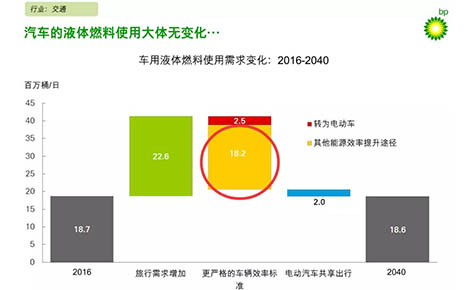 《展望》預(yù)測,到2040年,電動車出現(xiàn)對石油消費量的減少僅有250萬桶/日,但能源利用效率的提高將減小1820萬桶/日的石油消費量。