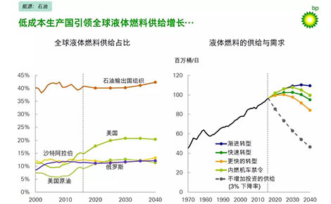 BP集團首席經(jīng)濟學(xué)家戴思攀也特別強調(diào):“有人認為電動汽車的快速增長將導(dǎo)致石油需求崩潰,然而,即便電動汽車增長速度再快,這種觀點也無法得到基本數(shù)據(jù)的支撐。即使在內(nèi)燃機禁令和極高效率標準的情景中,2040年的石油需求量仍高于今天的石油需求量!